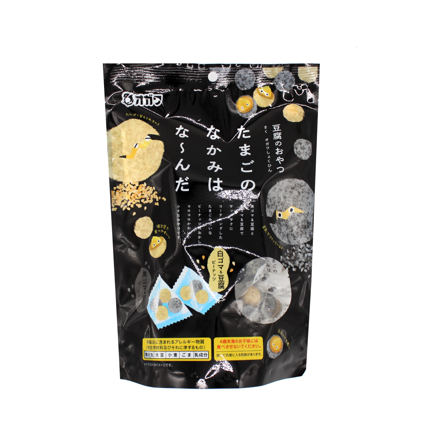 白ゴマや黒ゴマ&豆腐でサックサクにコーティングした、たまごみたいなピーナッツのお菓子です。コロコロした愛らしい形に夢中になる逸品です!